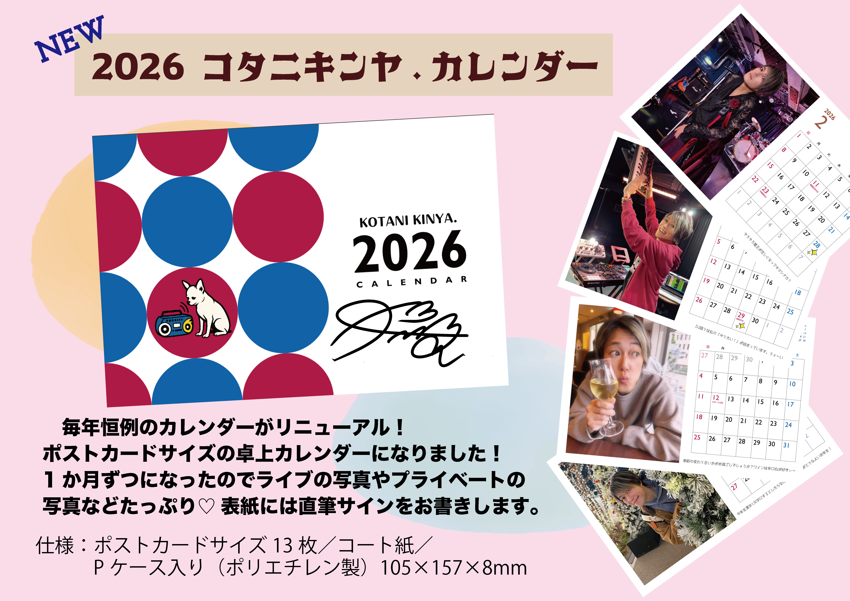 今年は毎月違う写真が楽しめる卓上カレンダーに大幅リニューアル!ライブのお馴染みの写真から、初公開のプライベート写真まで盛りだくさんのカレンダーです。